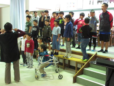 10月17日(木)より、和水町音楽会に向けて全校合唱の練習をはじめました。今年も隣の山鹿市より、全国的にも有名な角田陽子先生にボランティアで指導に来ていただくことになりました。さっそく17日に第一回目の練習を行いましたが、子どもたちの歌がみるみる上達しました。先生には音楽会まで後3回指導に来ていただくことになっています。子ども達には、素晴らしい経験になると確信しています。