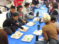 12月1日(日)のふれあい会では、みんなでだご汁を作りました。この日のためにお父さん方は早朝から鍋を洗ったりガスの準備をしてくれました。お母さん方は朝早くから野菜の切込みなど調理の準備をしてくれました。みんなでお団子を作った後、最後の味付けは地域の方々がしてくれました。昼食は、だご汁と、ぜんざいと、炊き込みご飯をみんなで食べました。とても美味しかったです。地域の方々の温かさに触れた一日でした。