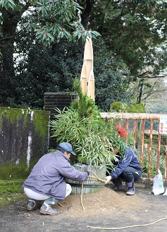 12月18日、深草先生に門松の飾りつけをしてもらいました。お正月を迎える準備が整いました。