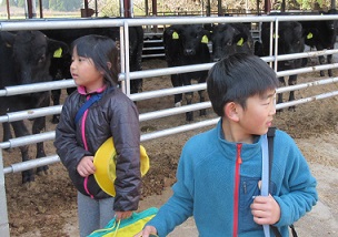 9月13日(木)、1年生みんなで、近くの大城戸牧場まで、牛の見学にいきました。大城戸牧場にはたくさんの牛がいて、びっくりしました。