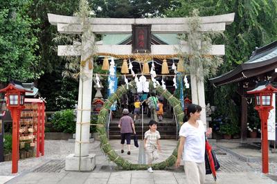 茅の輪くぐりは、神社の鳥居の下や拝殿前などに茅(ちがや)や藁(わら)で作った大きな輪の中をくぐって、半年分の罪や穢れをはらい、残りの半年間の無病息災をいのります。