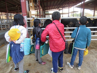 9月13日(木)、1年生みんなで、近くの大城戸牧場まで、牛の見学にいきました。大城戸牧場にはたくさんの牛がいて、びっくりしました。