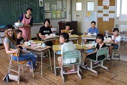 各学年の給食風景をみましたが、どの学年も親子で机を丸く囲んでの給食で、とても楽しそうでした。