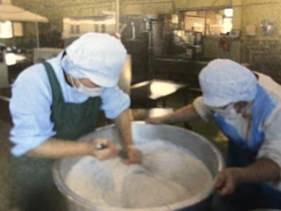 写真は、10㎏の水菜を刻んでいるところです。茎がシャキシャキとしていましたよ!