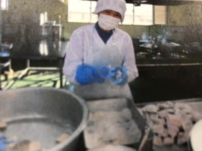 写真は、いりこを乾煎りして、温度を確認しているところです。いりこは熊本県と長崎県の海で水揚げされたものです。