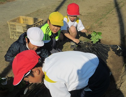 11月5日(月)、1、2年生はイチゴの苗植えをしました。2年生は、畑に一人一株植えました。1年生は、植木鉢に一苗ずつ植えました。寒い冬を過ぎ暖かい春になったらおいしい実が実ることとと思います。