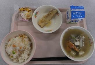 本日の献立は、生姜ごはん、牛乳、トマトだんご汁、太刀魚の南蛮漬け、お米のタルトでした。本日はふるさとくまさんデーということで、八代地域の特産物を使った献立でした。八代市の東陽町は生姜の生姜の国内生産2位、また八代地域はトマトの名産地でもあります。太刀魚は不知火海で水揚げされたものです。生姜ご飯やトマトのだんご汁等は、家庭でもなかなか食べる機会はないと思いますが、とてもおいしかったです。
