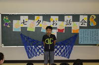 7月1日(月)に七夕お話会を実施しました。たなばたの歌を歌った後、各学年の童話発表代表者が、発表してくれました。今年初めて代表になった人も、昨年に引き続き代表になった人もいましたが、それぞれが昨年よりかなり上手になっており、この一年間の成長が伺えました。