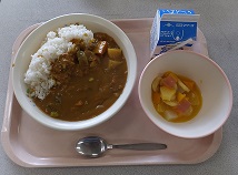 8月27日(月)、夏休み明け最初の給食でした。メニューは、大人気のカレーライス。長期休暇明けを心配して、食が進むようにカレーになったとのことです。かぼちゃが入っていて、甘くておいしかったです。