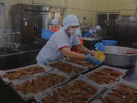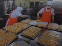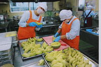 写真は、みかんゼリーを作っているところです。今日は478個作られたそうです。