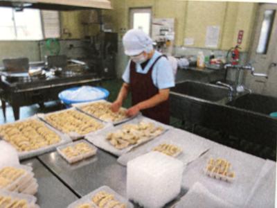 中身の「あん」も調理場でつくられています。お肉・野菜・大豆をいれていためたものです。