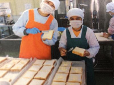 写真は、食パンにマーガリンを塗っているところです。食パンのはしっこまで広げて塗るように気をつけてくださっています。