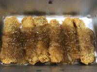 玉ねぎの入った甘酸っぱいソースをかけていただきました。
