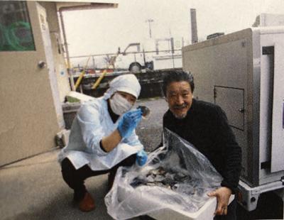 写真は、今日のアジを納めてくださった前淵鮮魚店さんです。