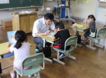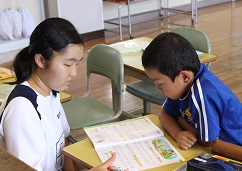 7月4日(水)、本校の卒業生である豊後くんと有働さんが、職場体験学習で本校に来校しました。二人とも菊水中学校の生徒で、普段はなかなか会う機会がありませんが、久々の再会に子どもたちは大興奮でした。