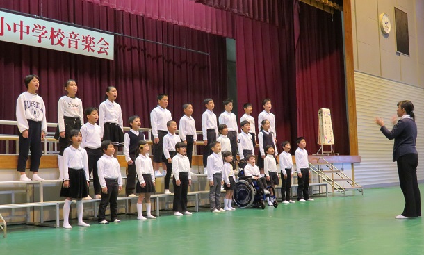 11月10日(土)、この日は和水町教育の日です。午後からはたくさんの来賓の方々をお迎えして、町音楽会が実施されました。本校からは「ありがとうの花」の全校合唱と、船山太鼓「和水」を発表しました。合唱は、わずか2週間あまりの練習でしたが、子どもたちの頑張りですばらしいものに仕上がりました。また、船山太鼓は、深草先生のご指導で、聴衆を引き付ける迫力と緊張のある演奏ができました。この音楽会で感じたことは、「子どもたちの力はすごい」ということです。ひとつひとつの指導をしっかりと吸収し、どんどん成長していきます。この日は、最高の発表ができたと思います。また、「本校区の保護者の協力、団結がすごい」ということです。太鼓の運搬や設置、片づけ等、大勢でやっても大変なことを、さっと当たり前のように動いてやっていただきました。いつも感謝の気持ちでいっぱいです。