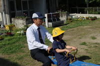 4月20日(土)、PTA総会の折、下津原の子どもたちが総会が終わるまでということでパソコン室で過ごしていました。しかし、パソコン室が結構暑かったのと、時間が長くて退屈していたので、校長と田島先生がついて、外で遊ばせることにしました。かなり日差しが強かったので、帽子をかぶらせ、教師の目の届く範囲で遊ばせましたが、あまりの元気の良さ、疲れ知らずに驚きました。大型遊具で遊んだかと思えば、ブランコ、シーソー、鬼ごっこやかくれんぼ、さらに鉄棒やうんてい、休むことなく遊び続けました。子どもたちの無限のエネルギーに圧倒されました。