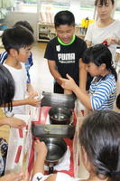 3,4年生では、蚕を幼虫から育ててきましたが、7月18日に繭から糸をとりました。オスからはきれいな白色の糸が、メスからは黄色の糸がとれました。光の加減によっては、銀色や金色に見えてとてもきれいでした。子ども達には一緒に一度のとても貴重な体験ができました。秋にはこの糸を使って実験があるそうです。