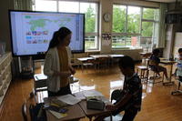 3,4年生は、英語の学習が大好きです。毎週水曜日、英語専科の北村先生とALTの南先生が来校され、英語の授業があります。4年生のしょうご君はマンツーマンでの英語だけの学習になりますが、何とか頑張っています。3年生は、持ち前の明るさと元気の良さを発揮し、いつも活気ある授業になっています。しっかりと英語をマスターして、世界で活躍できる人になってほしと思います。頑張れ東っ子!