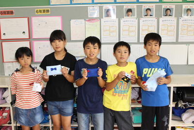 お手本は、事務の山崎先生が一枚一枚丁寧に作ってくださいました。その素晴らしい作品を見て子どもたちも作っているので、それぞれ良い作品が完成しました。