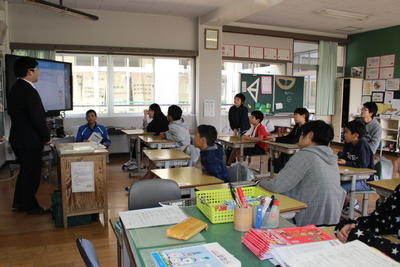 7月12日(金)、総務課長補佐の宇野さん、教育委員会の靏さん、NPO法人「お金の学校熊本」の方をお招きし、5,6年生対象の消費者教育を実施しました。「福袋を買うか買わないか」から始まり、最終的には家計に見合ったお金の使い方をすることを学びました。