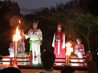 5年生6年生が参加しました。古代人の衣装を着て、松明を持って歩きました。