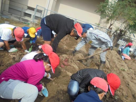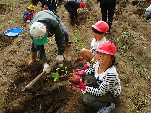 スーパー先輩と一緒に植えたおいもを みんなで掘りました。