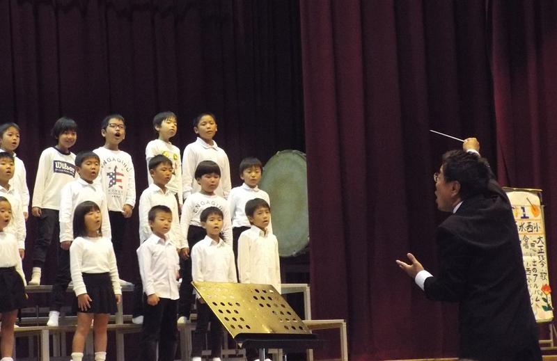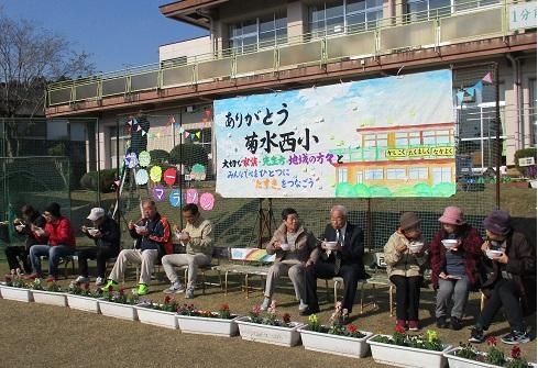 菊水西小学校は 「西小思い出のアルバム」を大正琴で演奏し、歌を歌いました。