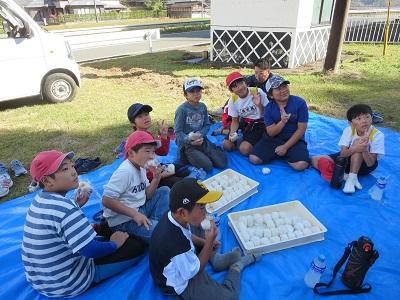 お昼は、保護者の皆さんが作ってくださったびっくりおにぎりを食べました。