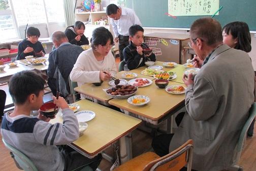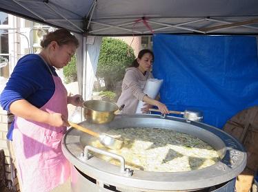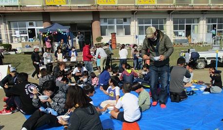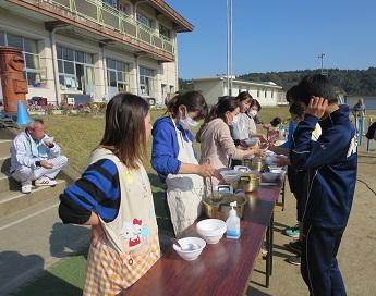 ゴールのあとは、保護者の皆さんが準備してくださった豚汁をみんなで食べました。