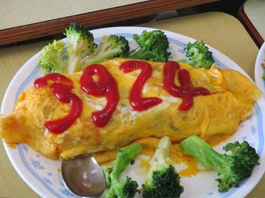 お芋ご飯のオムライス。「3924」の意味は「サンキュー西」
