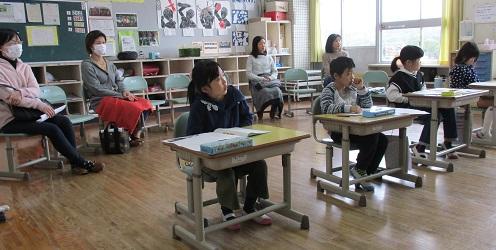 統合を前に菊水地区4校が集まっての合同学習をしています。