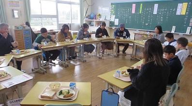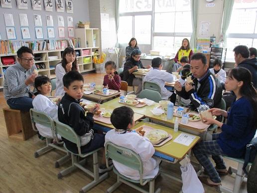 昼食時は、いろいろな学校のお友達と一緒にお弁当を食べ交流を深めました。