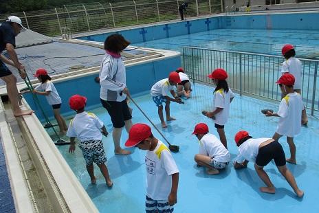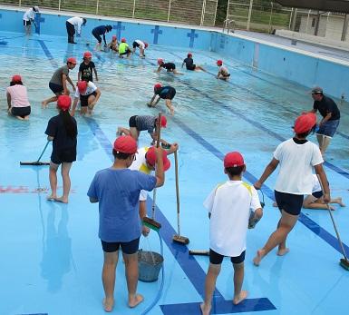 みんなでプール掃除 投稿日時 : 2019/05/30 学校サイト管理者 6月7日のプール開きを前に、みんなでプール掃除をしました。 1年生2年生は小プールを 高学年は大きなプールを 36人全員でピカピカにしました。