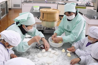 今日は、食生活改善員さんのご協力で「いきなり団子」づくり。