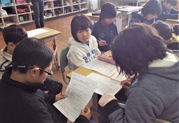 それぞれの学級で 資料をもとに学習したり、自分たちのくらしを見つめ直したりしていました。