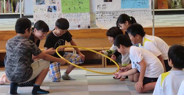 全校集会で5年生が集団宿泊で学んだことを発表しました。