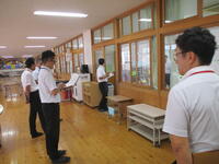 昼休みに、委員会活動のリーダーたちが校長室に集まり、委員長会議が行われました。現在全校で行っている「あいさつウイーク」の進捗状況と課題を出してくれました。どの委員会のリーダーたちも、それぞれの委員会で行っている取組に手ごたえは感じているようでした。さらに学校全体に気持ちのよいあいさつが浸透していくために、どんなことに力を入れていけばよいかを考えてくれました。リーダーたちが学校のことを思い、真剣に件を交わす姿に感動しました。また、さらに笑顔あふれる学校になるための次の取組も考えてくれていました。私からは、みんなが考えた取組をしっかり応援していくことを伝えました。今後、委員会のリーダーたちとランチミーティングをしながら、目指す学校の姿について語り合う時間を楽しみにしています。