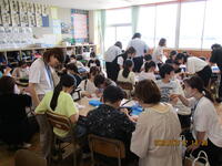 子どもたちが包丁を使って大根やネギなどを切っている様子を見ていると、ケガをしないかと心配でした。子どもたちの中には、具材を上手に切っている子もいて、感心させられました。あるグループのみそ汁を食べさせてもらいましたが、とても美味しくいただきました。「校長先生、味はどうですか?」と聞かれたので答えていると、「食レポが上手ですね。」と褒められてしまいました。子どもたちにとっても、よい思い出になったことでしょう。
