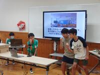 県立技術短期大学の方の協力を受け、3年生がプログラミングについて学ぶ授業を行いました。立方体のキューブを指令に合わせて動かすキットを使い、楽しく学ぶ様子が見られました。最初に「一歩前へ」や「右に曲がる」といった動き方が書かれたカードを何枚か並べ、その上をキューブが動くことで動き方を記録します。動き方を示した本のスタート位置にキューブを置くことで、描かれた道に沿って指令通りにキューブが動いていきます。指示通りに動かないこともありましたが、自分たちで考えながら楽しく学んでいました。自分が意図する一連の活動を実現するために、どのような動きの組合せが必要か、どのように組み合わせたらいいのか、どのように改善していけば、より意図した活動に近づくのかといった物事を論理的に考える力を育むうえで、とても良い取り組みだと感じました。