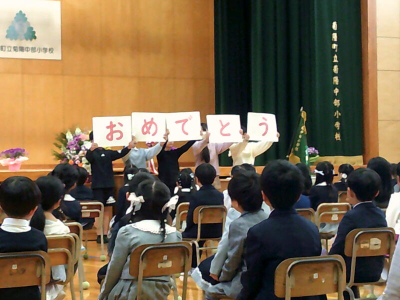 式が始まると、みんな元気に入場しました。校長先生や来賓の方からの「おめでとうございます。」という言葉に「ありがとうございます!」と返す姿がとても健気でした。