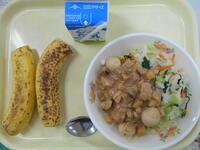 10月13日木曜日の給食は神戸から送られてきた台湾バナナと台湾料理でした。