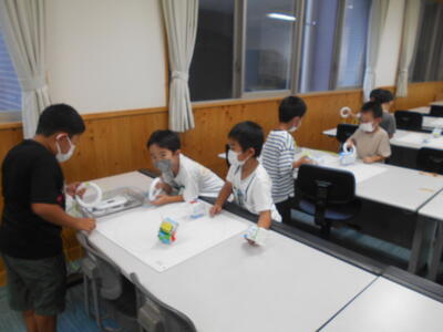 みんなアイデアいっぱいのオリジナルのロボットを使って楽しみました。