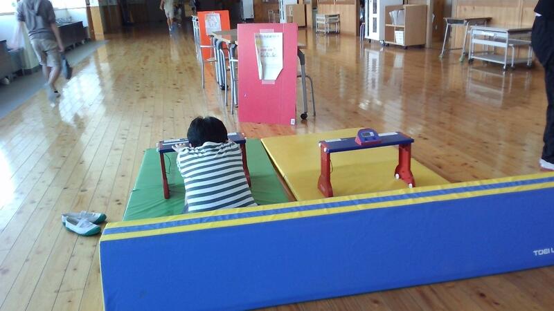 この取り組みは、体力テストの結果から、柔軟性や握力がもっとのびるように考えられて始まりました。休み時間にいろいろな学年の人たちが挑戦しています。