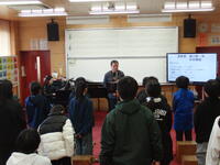 今朝は、この冬一番の寒さだったのではないでしょうか。いつもの場所で子どもたちを迎えていると、白い息を吐きながらも、子どもたちが元気に登校してくれました。登校してきた子どもたちと「おはようござあいます」のあいさつを交わしていると、一人の子が近づいてきて、「校長先生、雪を集めてきました。」と雪の塊を見せてくれました。昨日は雪が降り、日陰や道路の隅に残っていたのでしょう。わずかの雪でしたが、それでも頑張って集めたのでしょう。自分の幼少期を思い出しながら、その子の気持ちがよく伝わってきました。手袋はつけていましたが、やはり冷たそうでした。昨日の雪が解けて水たまりになったところが凍っていて、滑る場所もありましたので、登校してくる子どもたちに「そこ滑るから気をつけてね。」と声を掛けました。そのように言われると、逆にのぞき込んだり踏んでみたりしたくなる気持ちも分かります。子どもたちのそのような行動に、少しだけ心が温かくなった日でした。