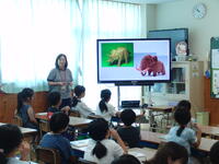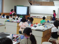 歯科衛生士の方をお迎えし、4年生を対象に「歯みがき指導」を行っていただきました。歯みがきが十分でなく、食べかすが歯の隙間や歯茎との間、奥歯などに残っているとむし歯の原因になることを、映像などを通して学びました。その後、自分の歯のどんなところに磨き残しがあるのかを確かめ、歯みがきを行っていきました。子どもたちの学習シートを見ると、いろいろな部分が赤く塗られていて、歯みがきが十分でないことを実感できたようです。歯垢が赤く染め出された部分がなくなるように、みんな一生懸命歯みがきに取り組んでいました。この授業だけでなく、自分の歯を大切に守っていくために、毎日の歯みがきをがんばってくれることと思います。子どもたちの様子を見ながら、私も歯みがきを丁寧にしていかねばならないと思いました。