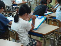 5年3組で国語の授業を本校の先生方に公開するということでしたので、子どもたちの学習の様子を見せていただきました。「漢字の成り立ち」という単元で、自分たちで形声文字を使った漢字クイズを作る学習でした。形声文字は、意味を表す文字と音を表す文字とを組み合わせて作った文字ですが、子どもたちは漢字辞典とにらめっこしながら、どの漢字をクイズとして出題しようかと、「へん」と「つくり」に着目しながら考えていました。私も問題を作るならばどの漢字にしようかと漢字辞典を見ながら考えてみましたが、いろいろな漢字が気になって、一つに決めることができませんでした。先生の指示をしっかりと聞き、学習課題に対して一生懸命取り組んでいる子どもたちの姿は、素晴らしいと感じました。それと同時に、漢字というものは、象形文字や指事文字、会意文字も合わせて、昔の人たちがよく考えて形作られてきたものだと、改めて実感した1時間でした。