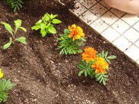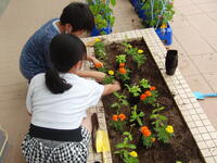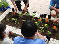 昼休みに環境委員会の子どもたちが花を植えるということを放送で聞きましたので、様子を見に行ってみました。1年生の教室前に花壇があるのですが、マリーゴールドなどの花苗を委員会の子どもたちが移植していました。昨晩は大雨でしたが、日中は天気になり、大変暑い中ではありましたが、それぞれががんばってくれていました。1年生の子どもたちも興味を持ち、高学年の子どもたちが作業する様子をながめている子もたくさんいました。これからそれぞれの花が育ち、花壇が華やかになっていくことでしょう。環境委員会の皆さん、ありがとうございました。