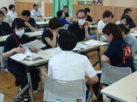 子どもたちが下校した後、本校の先生方は、子どもたちが「分かった」「できた」「もっとやってみたい」と思うような授業づくりに向けて学び合う研修を行っています。1時間程度ではありますが、グループでこれまでの経験や新たな工夫を出し合い、よりよい学習活動の在り方を考える有意義な時間です。本日は、6年生で行われている国語の教材を使い、多くの意見が出されていました。限られた時間での研修ですので、時間を有効に使いながら、職員みんなで学び合うこのような時間を、これからも大切にしていきたいと感じました。