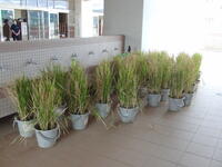 5年生がバケツでお米を育てる取組に挑戦していることは、以前お知らせしていました。今年の夏は猛暑続きでしたので、うまく育つだろうかと大変心配していました。こまめな水の管理のおかげで、お米を収穫することができるまでに育ちました。私は、バケツ稲で成功した経験がないので、本当にすごいことだと思いました。